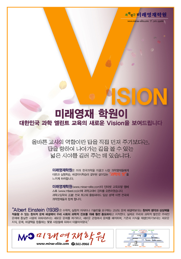 난 다른생각을 가지고 있는데... 모델도 좋지만 레이아웃 컬러티가 조금은 떨어진다고 보는데여,,, 명랑엉아 ^^ 저번에 애기한거 생각나네여 ㅋㅋ 공감미가 전혀 없습니다 해드카피나 부제목들이 제각기 노는듯한 느김이 더강해여 미래영재학원도 로고가 이상하구여 암튼 배이스나 바뀌고 문장이나 카피에선(편집) 바뀐게 없는게 조금 그럽니다.