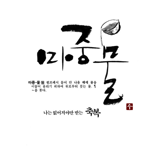 예인님 저도 캘리 부탁드려도 될까요? zenith 일반 0 5596 2009.05.11 23:19 매번 보기만 하다가 용기내서 초면에 부탁드립니다. 지역에 조그만 어머니 모임 명함에 들어갈 로고체구요 작지만 의미있는 모임이라 이쁘게 만들어 드리고 싶어서요. "마중맘"이라고 써주시면 될것 같습니다 마중물이란 순우리말에서 만드셨다고 하네요 샘플 하나 올려드리겠습니다 부탁드립니다