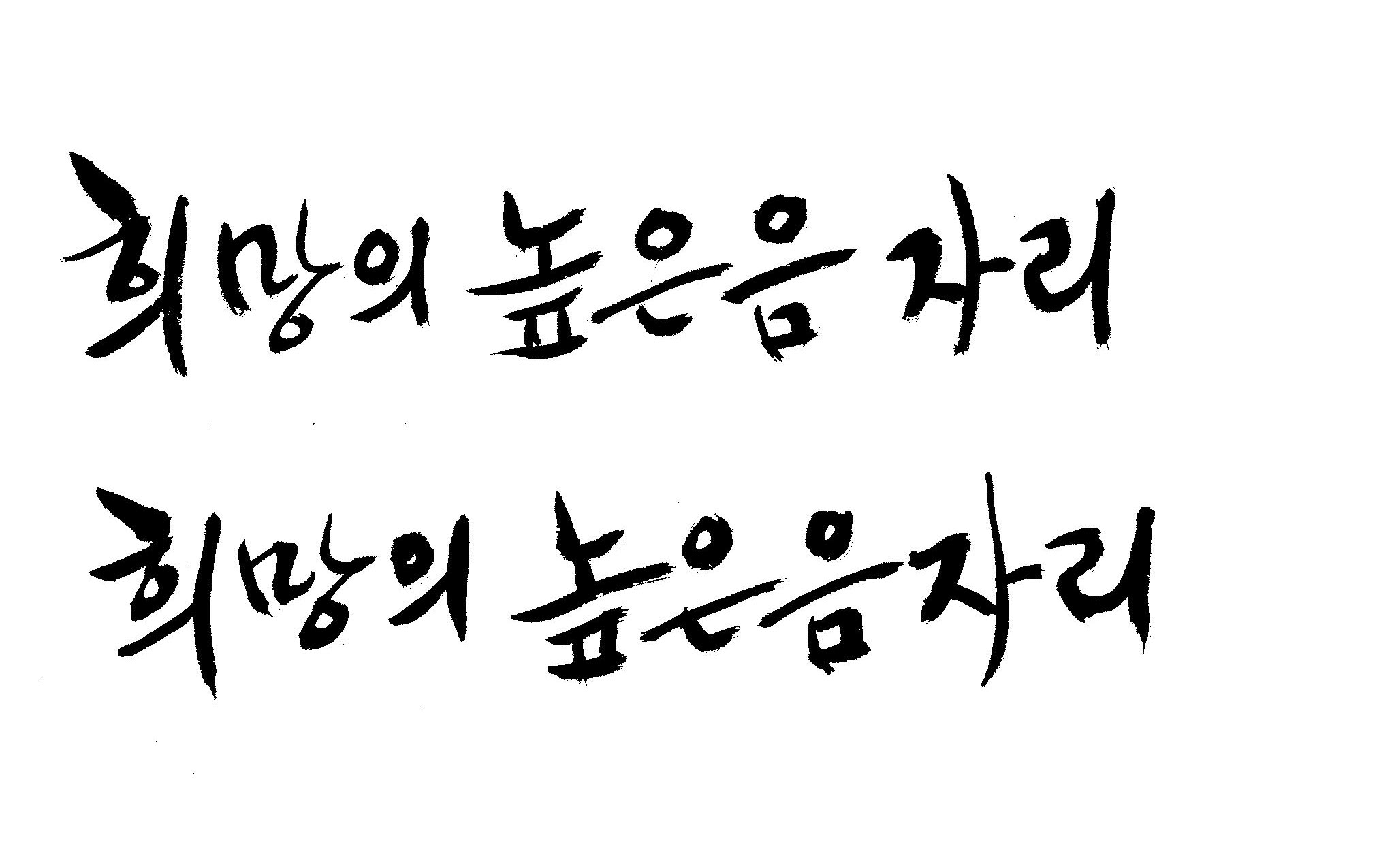 저도 캘리좀부탁이요 ^^;; 김철호 일반 0 6339 2009.01.14 10:59 > > 희망의 높은음자리 > > 감사합니다 ^^ 꼭부탁드려욧 ㅎㅎㅎ > 좋은 글이라서 신경썼는데 만족할 만큼 않나왔네요.. 유용하게 쓰시길...