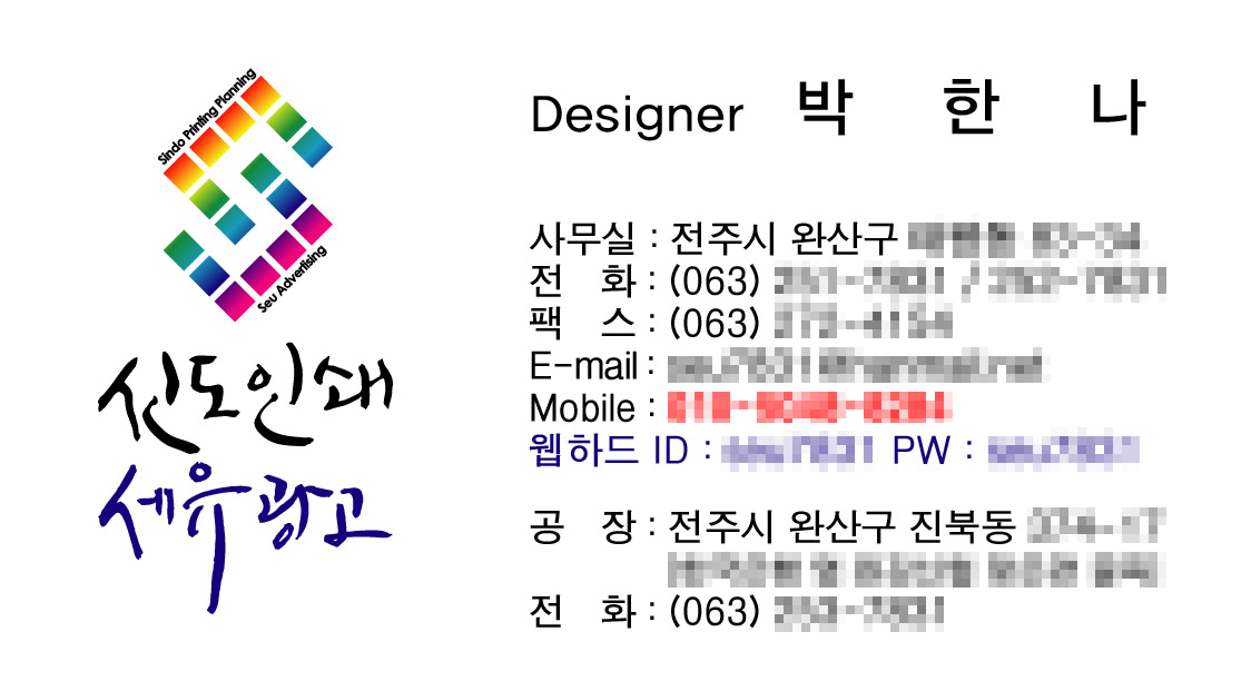 작살님께서 올려주신 캘리로 작업한.. 온새미로 일반 1 8837 2009.12.16 11:08 작살님께서 올려주신 캘리로 작업한.. 저희 명함입니다. 이사하고 일하느라 명함밖에 작업을 못해서 이제야 올려드립니다. 다른것도 만약에 작업한다면 올릴께요 감사합니다. ^^
